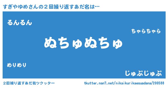 | 男性向けラノベタイトル風あだ名 | 『すぎやゆめの嫁は女の子じゃないと思った?』 |