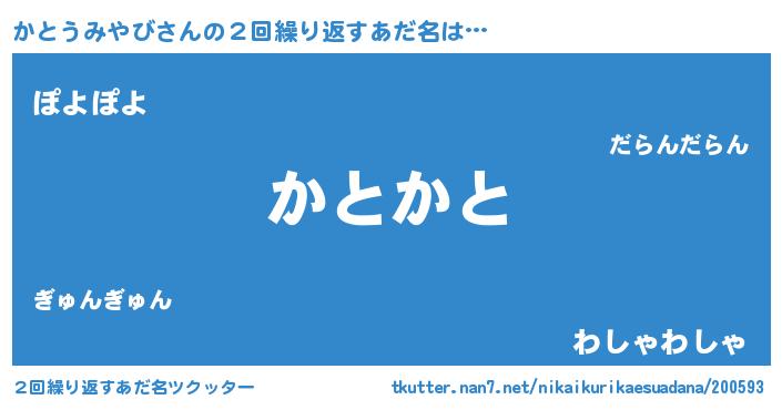 | ヘコむあだ名 | 『かとにゅー』『かとうみやび(爆)』 |