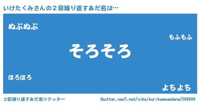 | 意味不明あだ名 | 『住所不定無職いけたくみ(95歳)』 |