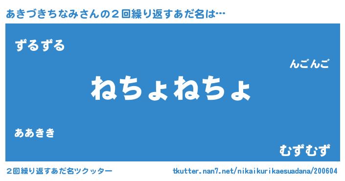 | 意味不明あだ名 | 『とにかく怪しいあきづきちなみ』 |