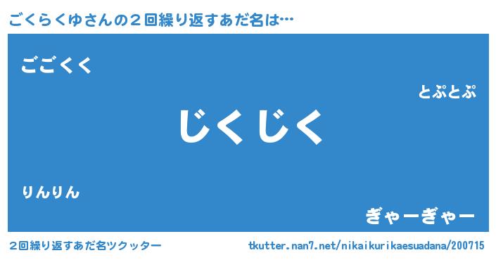 | 意味不明あだ名 | 『住所不定無職ごくらくゆ(95歳)』 |