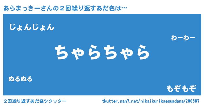 | 意味不明あだ名 | 『住所不定無職あらまっきー(53歳)』 |