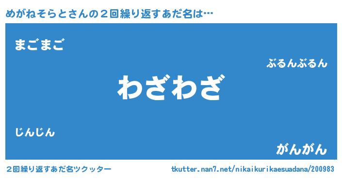 | 欧米人風あだ名 | 『トリンドルめがねそらと』 |