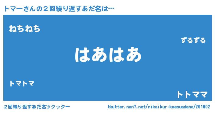 | 欧米人風あだ名 | 『ダニエルトマー』『ウサイントマー』 |