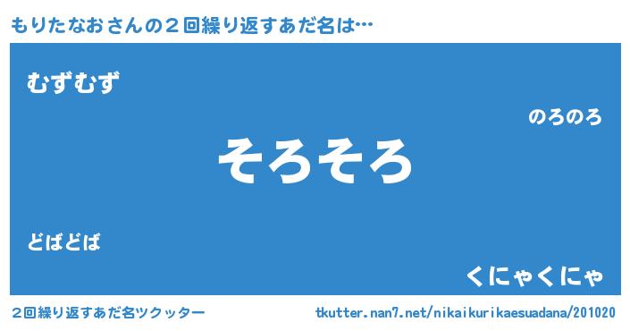 | 意味不明あだ名 | 『住所不定無職もりたなお(95歳)』 |