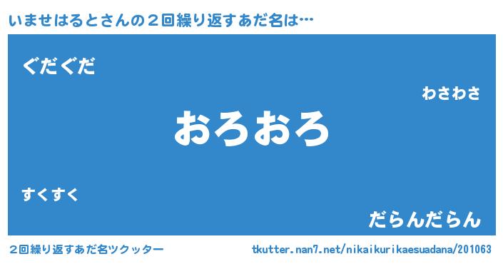 | 意味不明あだ名 | 『とにかく怪しいいませはると』 |