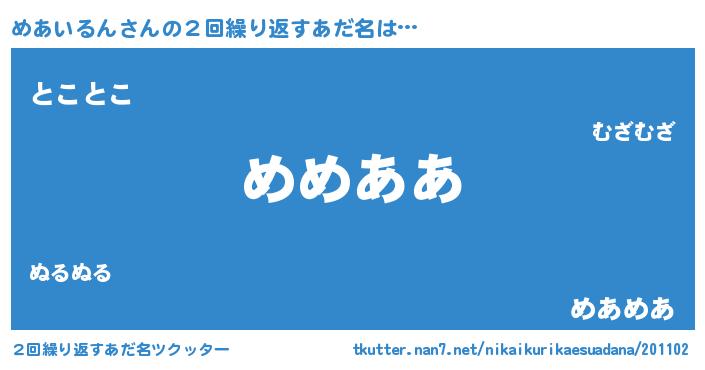 | 欧米人風あだ名 | 『めあいるんクリステル』 |