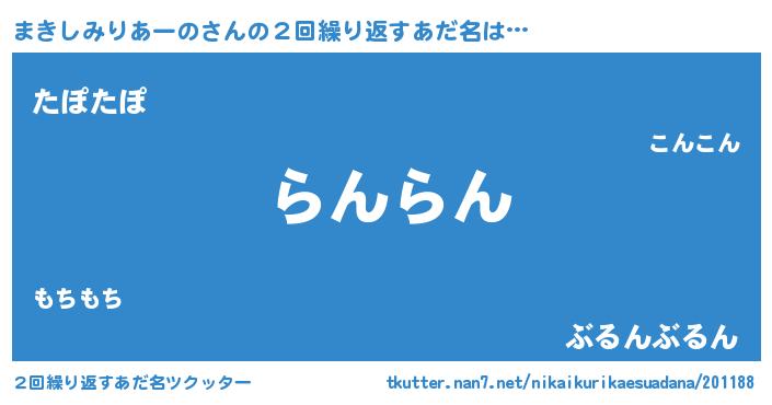 | 欧米人風あだ名 | 『トリンドルまきしみりあーの』 |