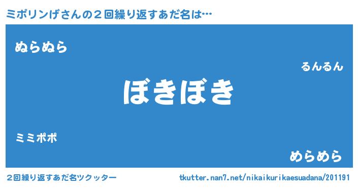 | ピコ太郎風あだ名 | 『ミミ太郎』『ミポ四郎』『ピミ一郎』 |
