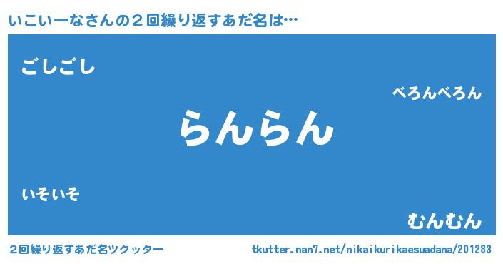 | 料理風あだ名 | 『いこいーなごはん』 |