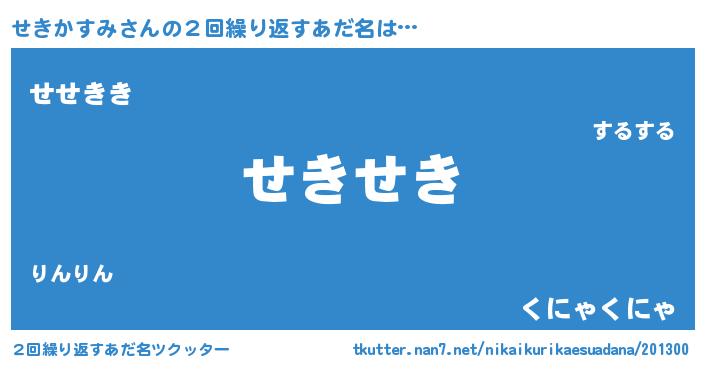 | ヘコむあだ名 | 『せきもー』『レバニラ』『せきっ子』 |