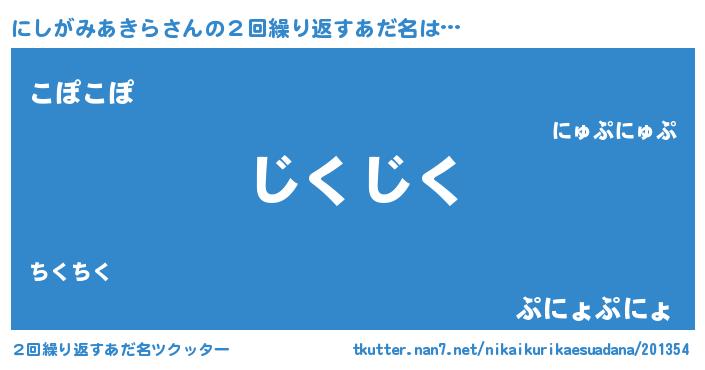 | ヘコむあだ名 | 『にしがみあきら(遠い目)』『にしぷりん』 |