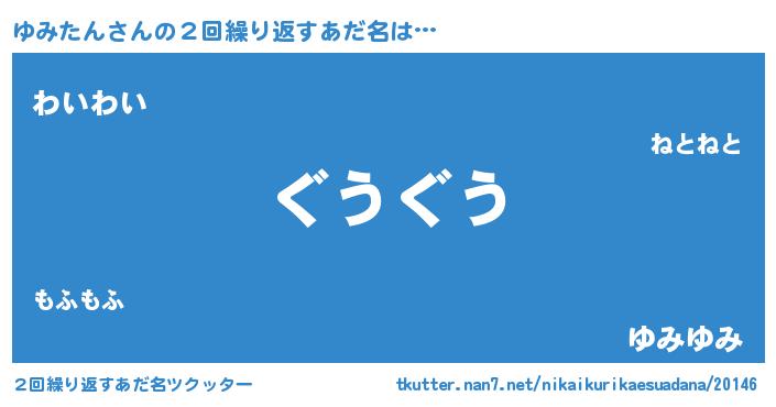 | 意味不明あだ名 | 『永久保存ゆみたん』『ペロリンゆみたん』 |