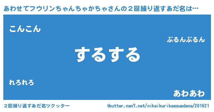 | 意味不明あだ名 | 『住所不定無職あわせてフウリンちゃんちゃかちゃ(77歳)』 |