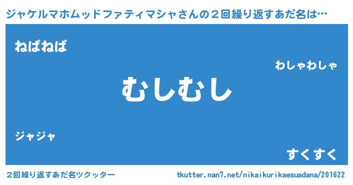 | 欧米人風あだ名 | 『ケンブリッジジャケルマホムッドファティマシャ』 |