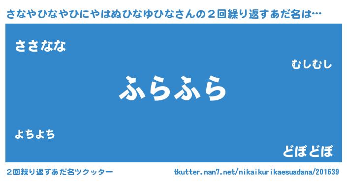 | 女子向けラノベタイトル風あだ名 | 『さなやひなやひにやはぬひなゆひな夫妻のなれそめ』 |