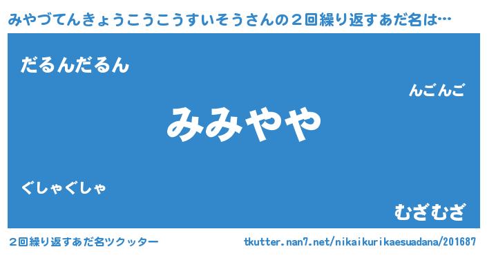| 男性向けラノベタイトル風あだ名 | 『みやづてんきょうこうこうすいそうに滅ぼされるだけの簡単なお仕事です』 |