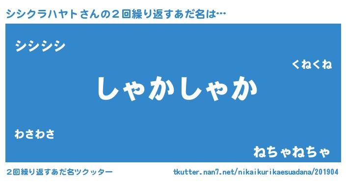 | 意味不明あだ名 | 『住所不定無職シシクラハヤト(5歳)』 |