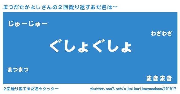 | ヘコむあだ名 | 『まつだたかよし(遠い目)』『まつっふぃ~』 |