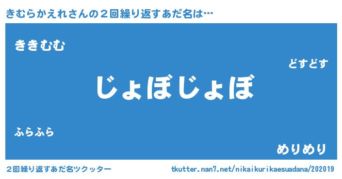 | 意味不明あだ名 | 『住所不定無職きむらかえれ(65歳)』 |