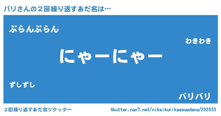 | ピコ太郎風あだ名 | 『バリ二郎』『ババ太郎』『バコ三郎』 |