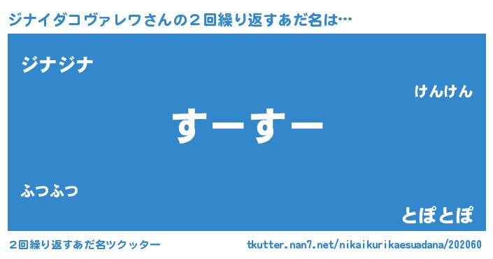 | 欧米人風あだ名 | 『ダレノガレジナイダコヴァレワ』 |