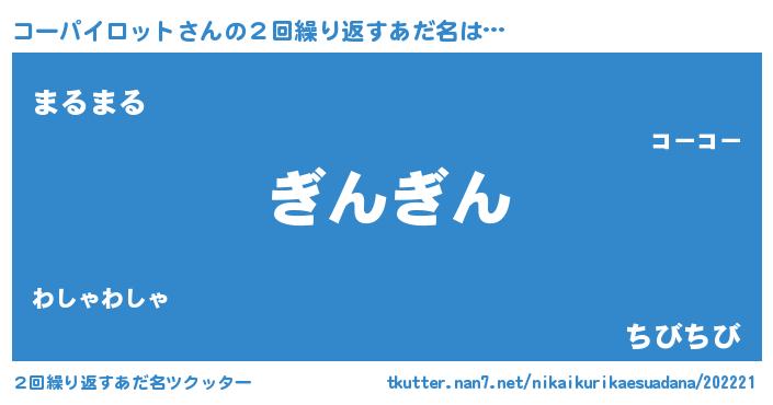 | 意味不明あだ名 | 『永久保存コーパイロット』 |