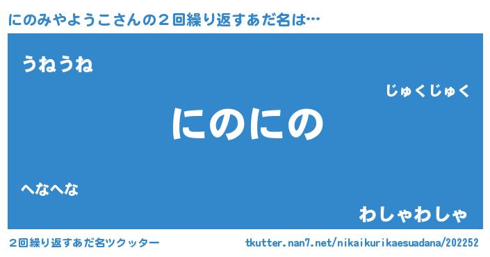 | ピコ太郎風あだ名 | 『ニコ八郎』『ニノ次郎』『ニニ太郎』 |