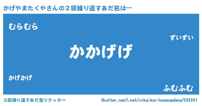 | 意味不明あだ名 | 『かげやまたくやフォーエバー』 |