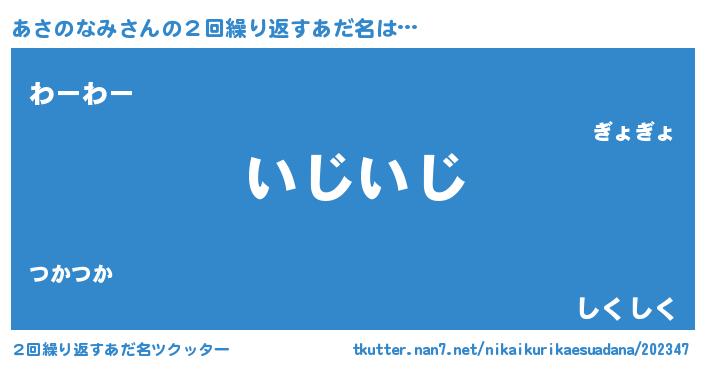 | 意味不明あだ名 | 『とにかく怪しいあさのなみ』 |
