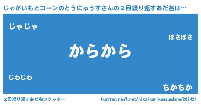 | 欧米人風あだ名 | 『ダルビッシュじゃがいもとコーンのとうにゅうす』 |