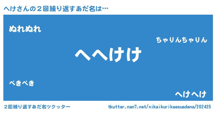 | 意味不明あだ名 | 『へけフォーエバー』『ペロリンへけ』 |