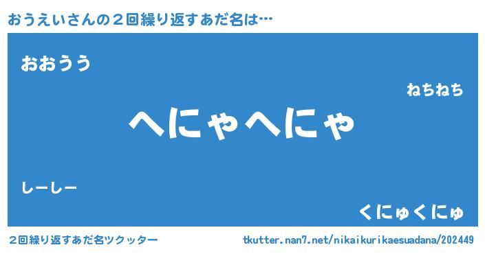 | 欧米人風あだ名 | 『ダニエルおうえい』『ウサインおうえい』 |