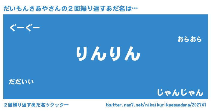 | ヘコむあだ名 | 『だいもんさあや(笑)』『だいを』 |