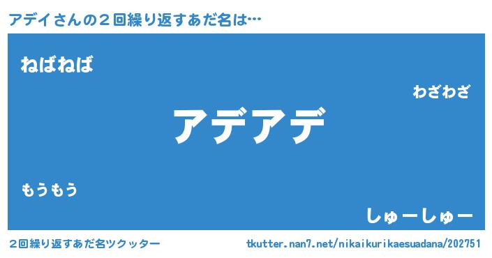 | ポケモン風あだ名 | 『アデチュウ』『アデゴンZ』 |
