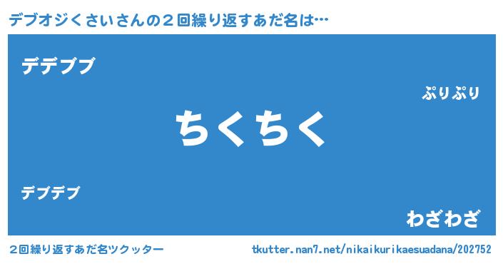 | 意味不明あだ名 | 『デブオジくさいフォーエバー』 |