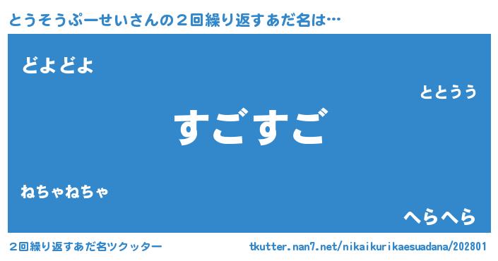 | 意味不明あだ名 | 『住所不定無職とうそうぷーせい(68歳)』 |