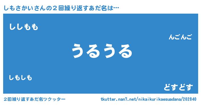 | 欧米人風あだ名 | 『ウサインしもさかい』 |