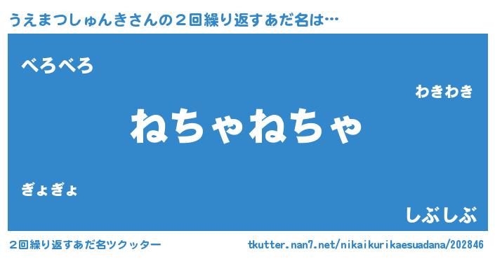 | 欧米人風あだ名 | 『ウサインうえまつしゅんき』 |