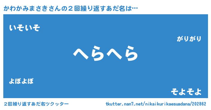 | 意味不明あだ名 | 『眠気覚ましガムかわかみまさき味』 |