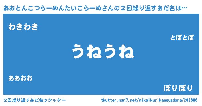 | 料理風あだ名 | 『あおとんこつらーめんたいこらーめの豆乳スープ』 |