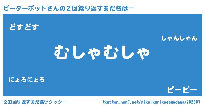 | 女子向けラノベタイトル風あだ名 | 『ピーターボットなんてお断りですっ。』 |