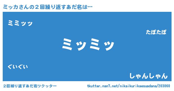 | 意味不明あだ名 | 『ペロリンミッカ』『ミッカフォーエバー』 |
