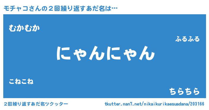| 男性向けラノベタイトル風あだ名 | 『モチャコの嫁は女の子じゃないと思った?』 |