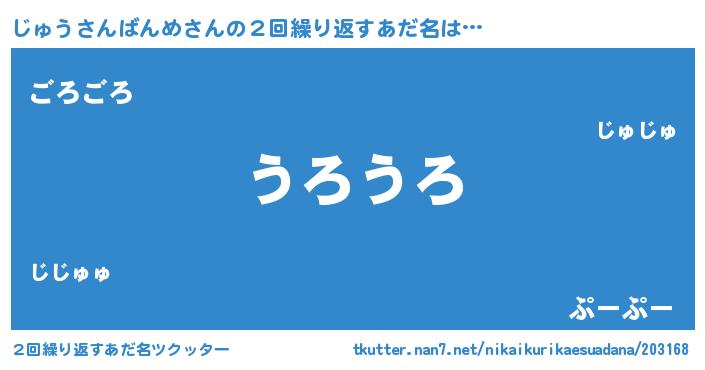 | 意味不明あだ名 | 『とにかく怪しいじゅうさんばんめ』 |