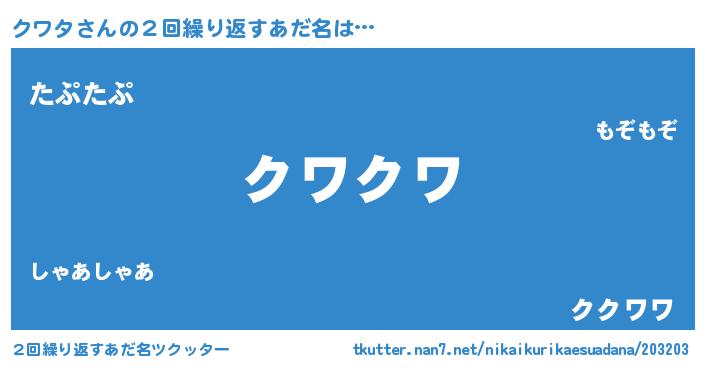| ヘコむあだ名 | 『クワもー』『つくし』『クワを』 |