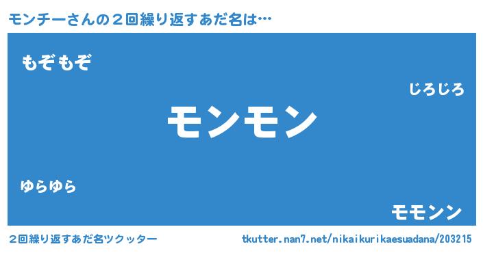 | ヒーロー風カッコイイあだ名 | 『スーパーモンチー』『最強戦士モンチー』 |