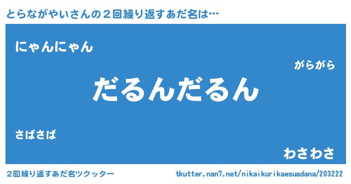 | 胡散臭い通販商品みたいなあだ名 | 『信頼と実績のネックレス…その名も「とらながやい」』 |