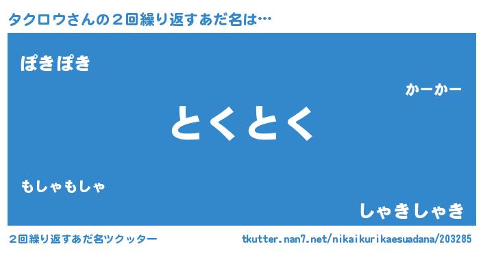 | ヘコむあだ名 | 『タクロウ(小並感)』『タクにー』 |