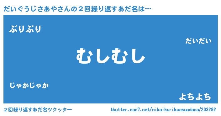 | 意味不明あだ名 | 『自称だいぐうじさあや』 |